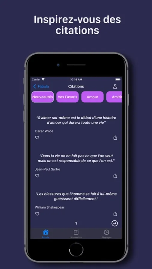 Lisez chaque jour une citation inspirante dans de nombreuses catégories: