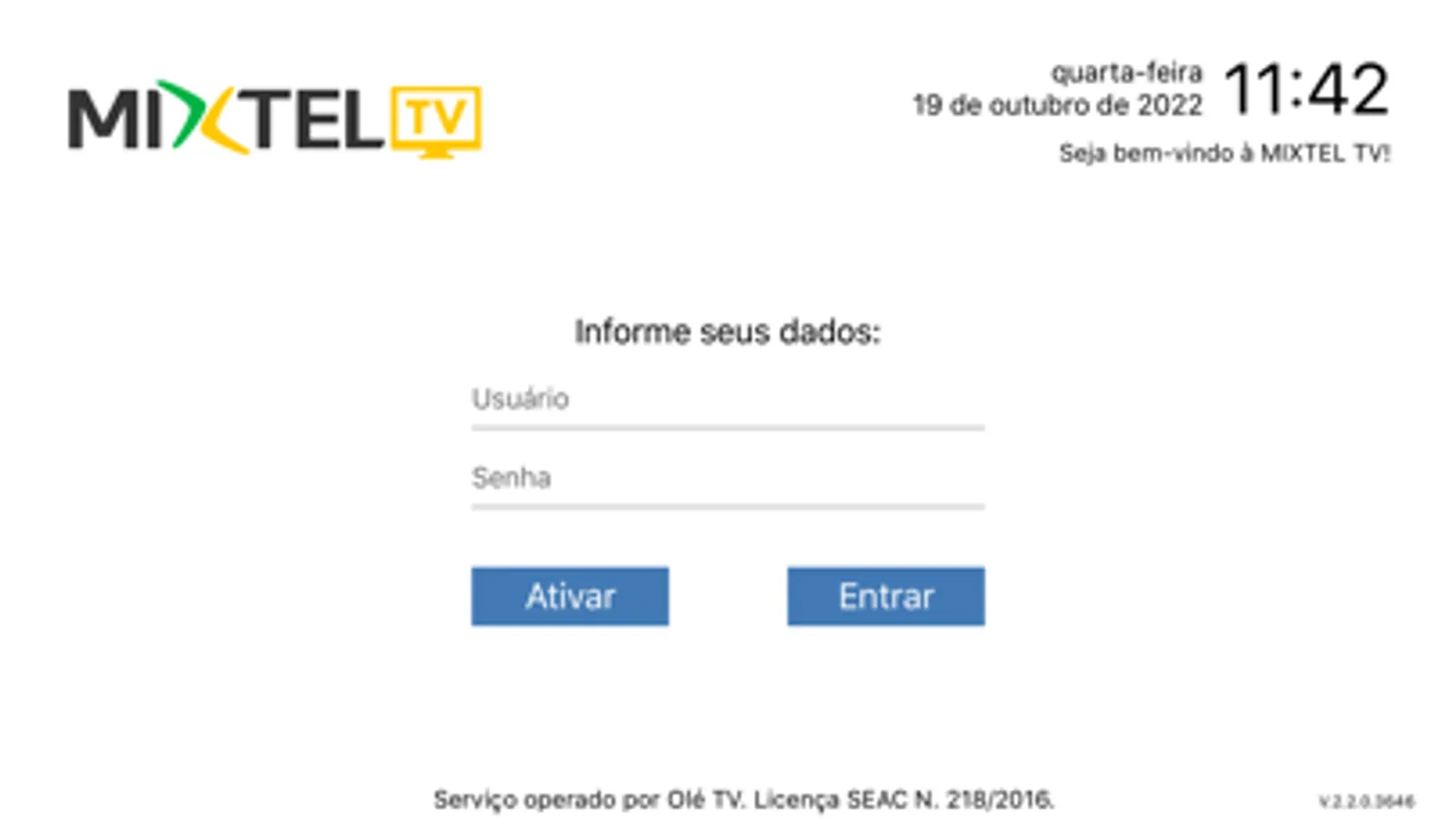 Operação legal de TV por assinatura operado pela Olé TV - Licença SEAC Nº 2018/2016.