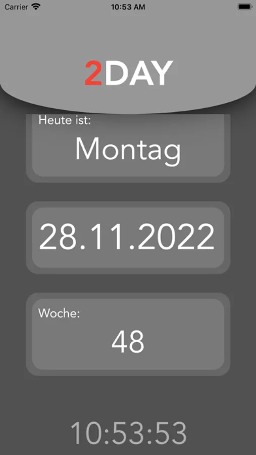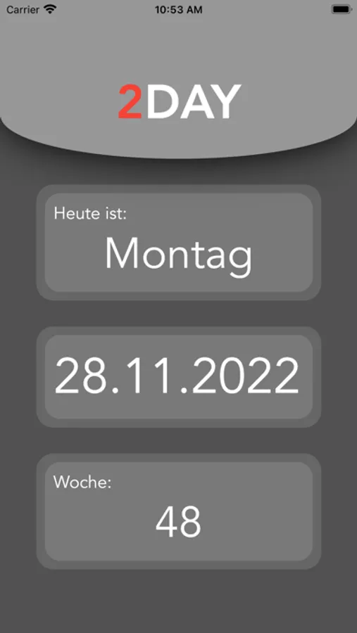 Öffnen Sie die App einfach und schon wissen Sie den Wochentag, das Datum und die Kalenderwoche. Alles auf einen Blick!