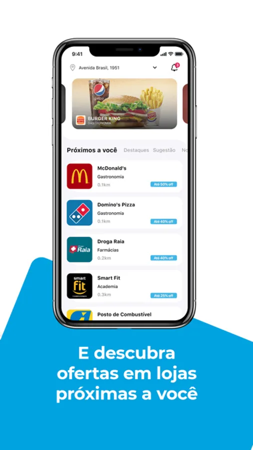 Navegue por um cardápio de ofertas com marcas parceiras de diversos segmentos.