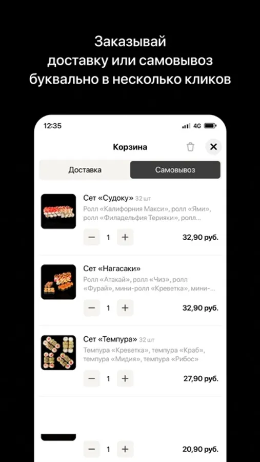 — Быстрый заказ с мгновенным подтверждением через приложение.