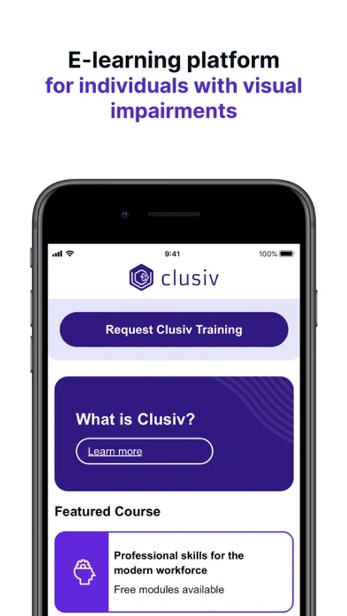 Clusiv is an online learning platform for the blind and visually impaired that teaches occupational training, technology skills, and educational courses to empower employment.