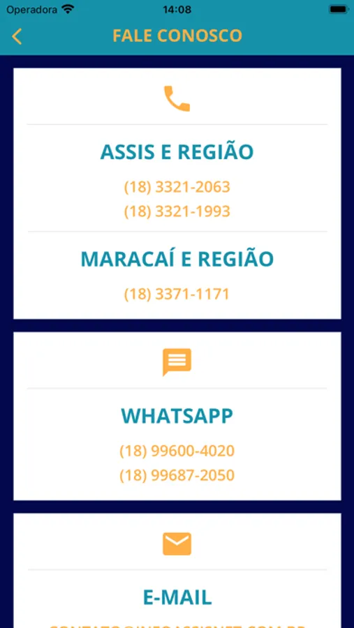 Com o aplicativo InfoAssisNET você cliente poderá visualizar seu plano atual, fazer download da segunda via do seu boleto para pagamento, consultar faturas, realizar abertura de chamados e acompanhar o andamento de seus chamados.