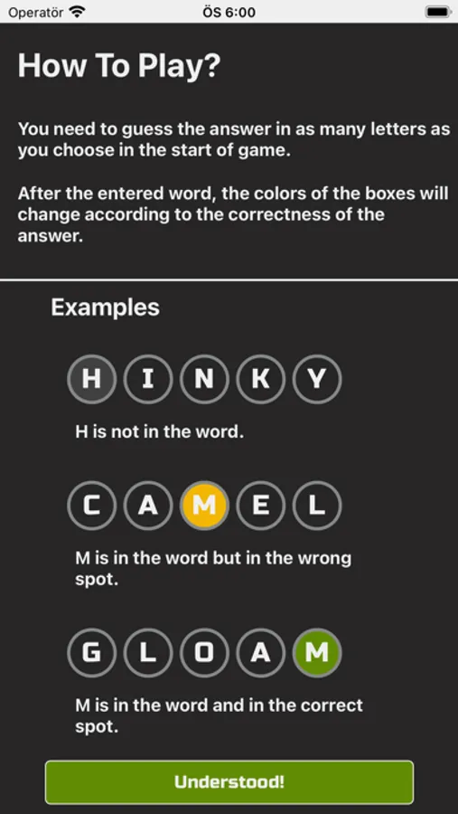 There is a chance to guess as much as the number of letters at the beginning of the game. The letter in the word is guessing; If it is correct it is shown in green, if it is not correct the word is yellow, if any letter is not correct it is shown in gray.
