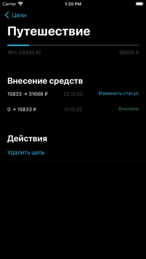 Обозначив цель, вы можете начать откладывать. Приложение построит для вас четкий график по которому вы уложитесь четко в срок. А в таблице вы сможете видеть в какие даты и сколько средств отложили, это поможет вам не запутаться.