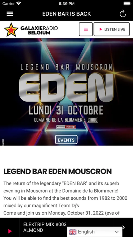 Galaxie Radio Belgium est une webradio Belge qui vous fait voyager dans les méandres de la scène Electronique Belge mais aussi internationale. Vous pourrez retrouver sur Galaxie Belgium les dernières nouveautées House, Techno, Soulful, Nu Disco, Progressive House, Mélodique Techno...Plus de 60 dj's se relient chaque semaine aux platines de la radio et vous feront voyager dans leurs styles fétiches allant de la lounge Downtempo aux rythmes les plus Hard comme le Hardcore en passant par de la Deep & Tech House ..... Venez profiter du pur de son Galaxie Belgium ... So Enjoy !