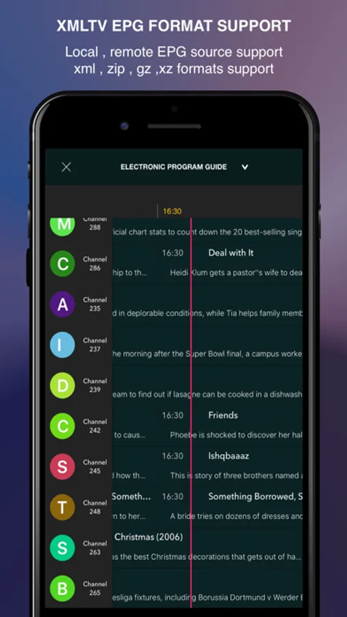 - Support : EPG in XMLTV format (xml , zip , gz formats allowed)