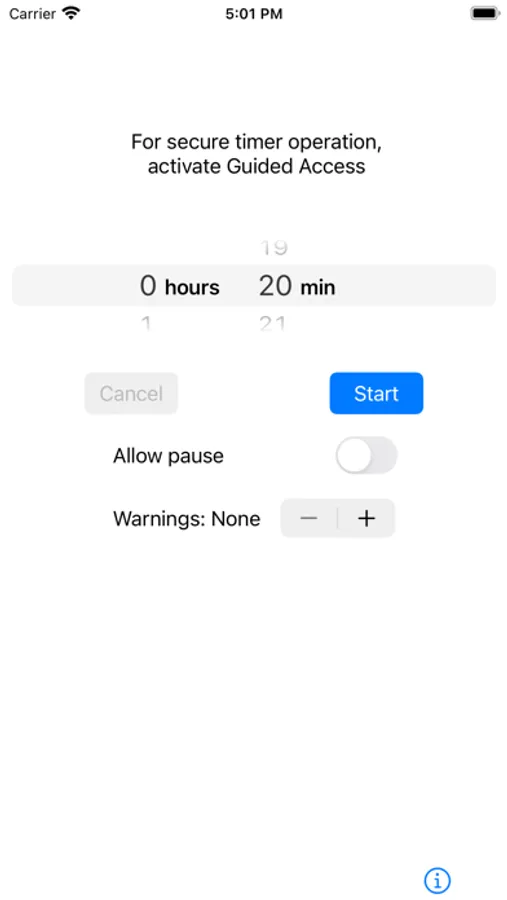 Parents -- you want to time an activity for your child, but you don't want them to be able to manipulate the timer or play with other apps. Designed specifically to work with the iOS Guided Access feature, Secure Timer is the no-frills solution. You can choose if the child is allowed to pause and resume the timer, but they won't be able to reset or cancel. When complete, you get a report of the start time, finish time, and pause times. You can also turn on 1-3 "warnings" to alert the child that the timer is approaching completion.