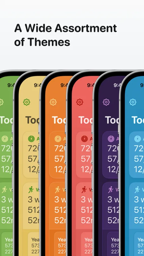 Peak includes a wide variety of beautifully designed widgets to help you keep track of your progress at a glance. These let you keep track of your stats for today, your progress towards your goals, and more. Each widget can also be customised with its own theme, for both light and dark mode.