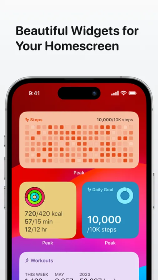 Peak gives you the ability to make your own fitness dashboard, and always stay on top of it with a range of widgets.