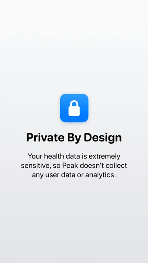 Privacy is one of the Peak’s core values. Health data is some of the most sensitive data people have, so there is no tracking or data collection.