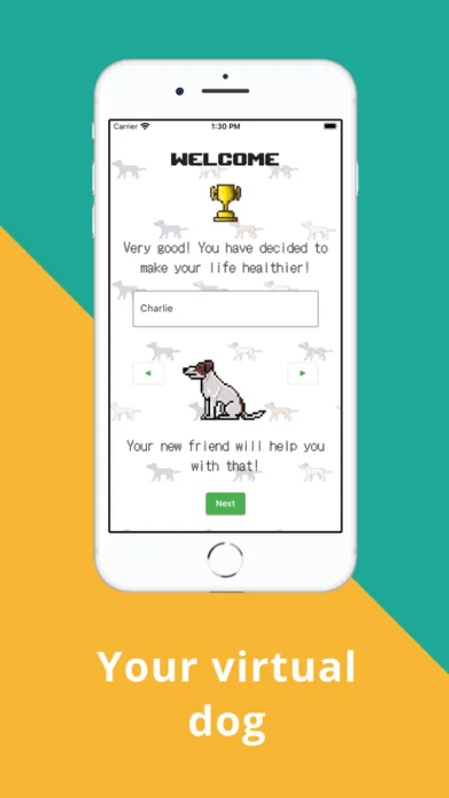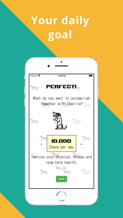 Exercise is very important, we all know, but it usually fails because of the motivation. Dogs can motivate people to move outside, but not everyone is allowed to keep a dog or has no time for it. In order to promote the motivation, there is a virtual dog in this app. This animates you again and again to walk a few steps and to reach your movement goal.