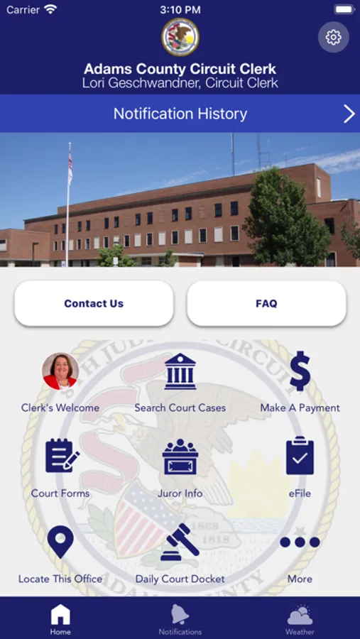 The Adams County Circuit Clerk mobile application is an interactive app developed to help improve communication with area residents.