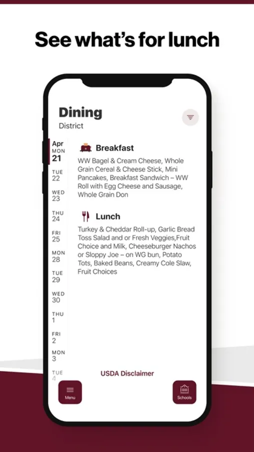 Within the dining section, you’ll find an easy to navigate, weekly menu, sorted by day and meal type.