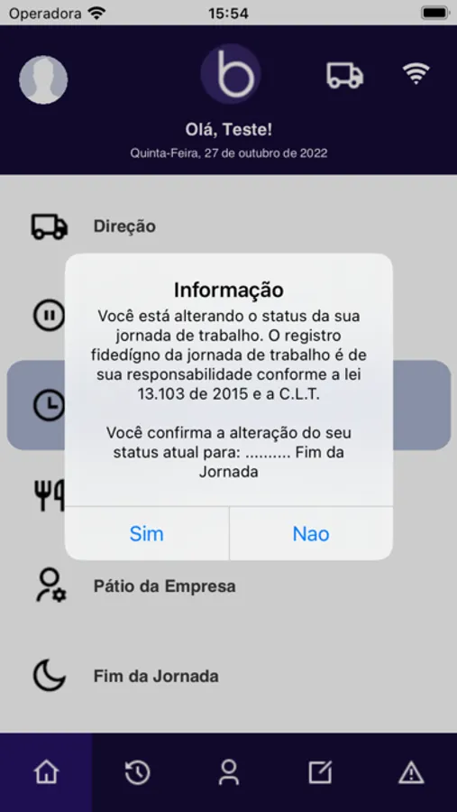 Aplicativo para controle da jornada de trabalho de motoristas.