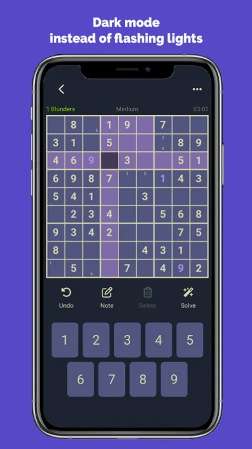 - Can't remember all possible sudoku fields in your head? Use the note tool to keep track