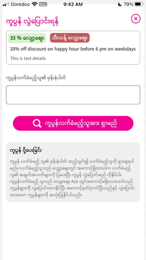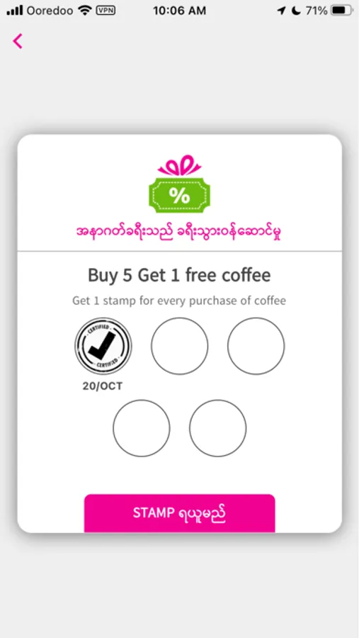 Bringing the best promotion and discount to everyone from variety of shops through creating win-win for both business and their customers. Allow business to create buy x get y reward coupon that allow customer to get stamp and deliver coupon when stamp reach the count limitation. Business can generate discount QR where customer claim coupon by scanning discount QR.