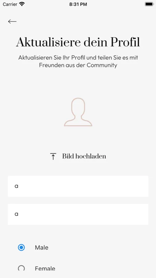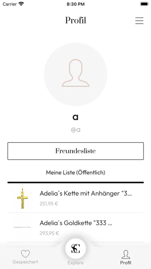 Once registered the user can upload a profile image, define username, select gender and most importantly browse the user database to send friend requests (or accept friend requests) in order to share preferences of jewellery.