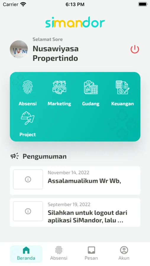 SiMANDOR adalah sistem informasi Manajemen secara menyeluruh untuk Developer di mana aplikasi ini adalah solusi untuk semua permasalahan dari sebuah perusahaan PROPERTI, aplikasi ini dibuat guna untuk menyelesaikan permasalahan terkait controlling dan juga kecepatan dalam pendataan dan akurasi administrasi, dapat kami pastikan DEVELOPER yang mengunakan aplikasi ini akan lebih mudah dan lebih pasti dalam mengambil keputusan dan juga dapat mengidentifikasi permasalahan yang timbul dalam perusahaanya secara dini.