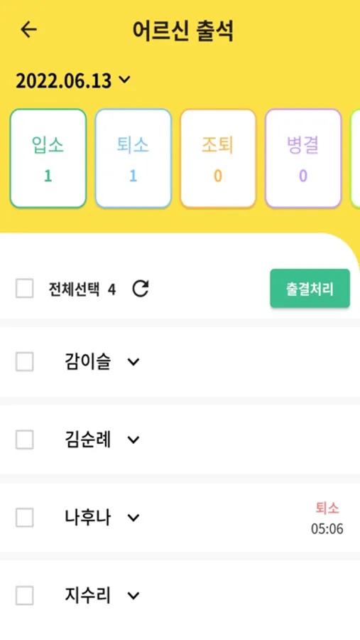 - 어르신의 입소부터 퇴소까지 간편하게 관리