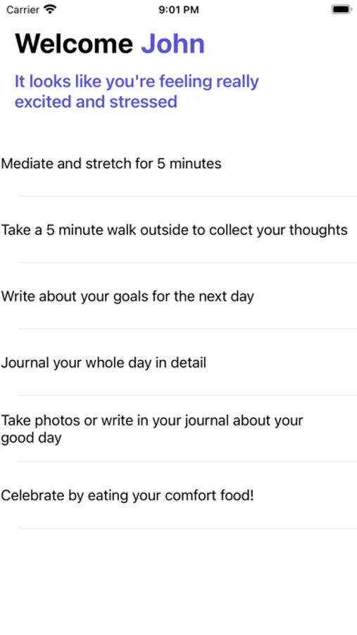 Manifest allows you too take a quick survey after a long stressful day and analyzes your responses to help you find activities to brighten up your day and reduce your stress!