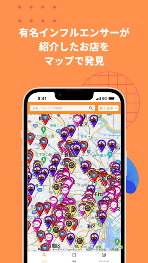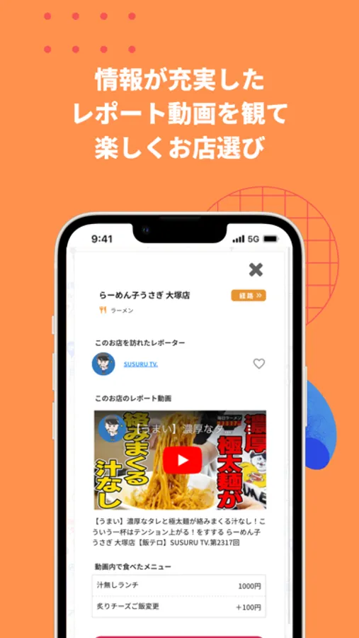 信頼できるグルメ系のインフルエンサーが動画で紹介したお店を、マップで手軽に検索することができます。