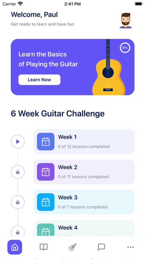 The Guitarist Academy app has a series of courses designed specifically for beginner guitarists. You’ll learn everything you need to know, from how to hold your guitar, to strumming chords and playing song.