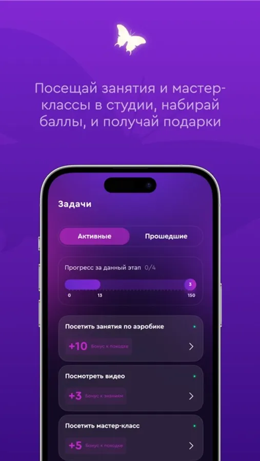 А также получать индивидуальные задания от вашего тренера, и зарабатывать баллы за их выполнение и получать подарки.