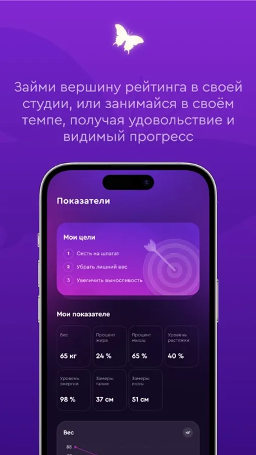 Вы сможете фиксировать личные цели в фитнесе и растяжке прямо в приложении. И контролировать изменение ваших ключевых спортивных показателей по мере движения к цели.