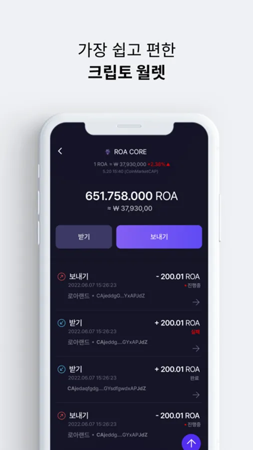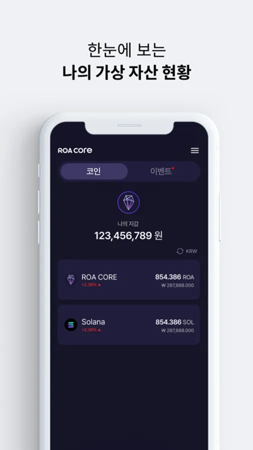 로아코어는 디지털 자산 통합 관리 플랫폼입니다. 편의성, 보안성, 그리고 사용자 편의를 최우선의 가치로 삼아 설계되었으며, 향후 솔라나 외의 다른 코인과 토큰들도 지원될 예정입니다.