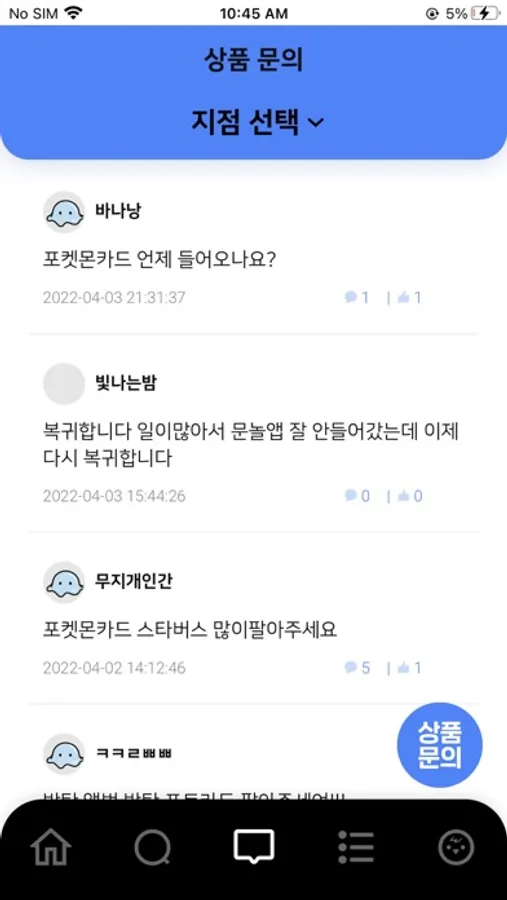 - 상품 문의 : 상품 문의 및 요청 관련 사항을 실시간 문의