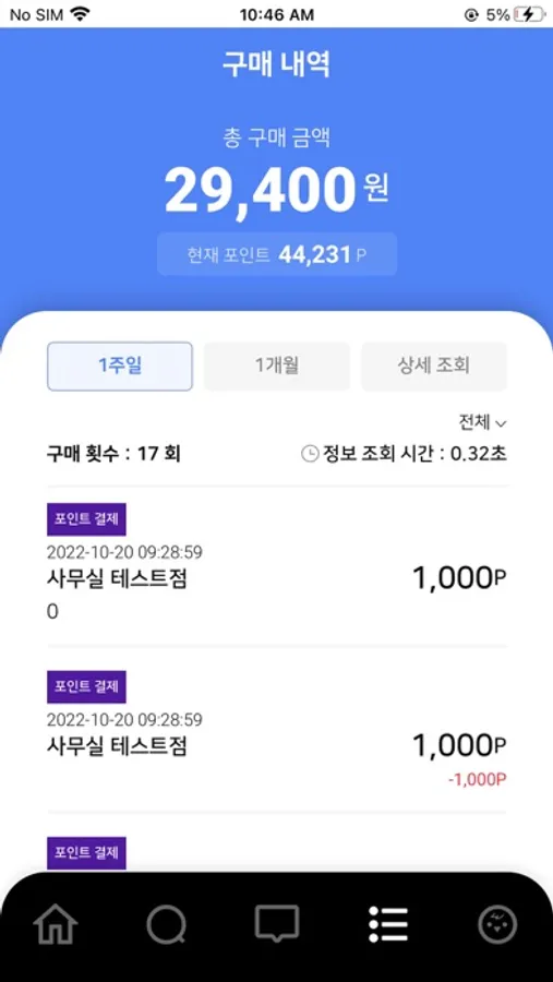 - 구매 내역 : 사용자의 구매 및 적립 내역 일괄 조회