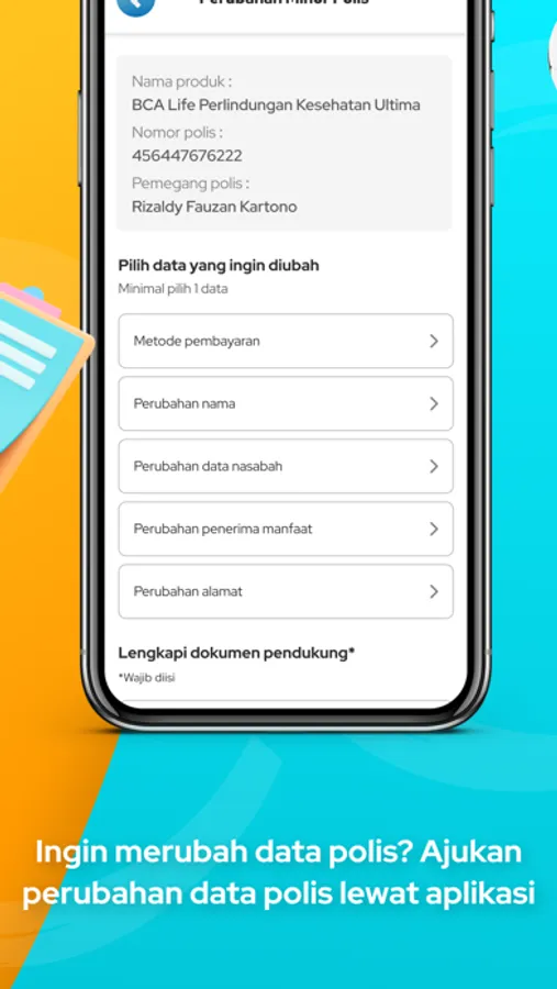 Kamu bisa akses informasi polis dan klaim NOW! Kalau kamu sudah punya polis dari produk BCA Life, cukup lewat aplikasi NOW by BCA Life kamu bisa akses apapun terkait polis kamu, bisa mengajukan klaim langsung dari aplikasi dimanapun dan kapanpun. Tentunya dilengkapi dengan PIN untuk menjaga keamanan informasi pribadimu ya. Merubah data juga jadi lebih simpel, ga perlu ribet lagi, tinggal rubah di aplikasi NOW by BCA Life.