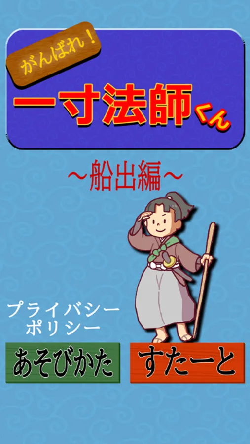 童話の「一寸法師」に登場する主人公「一寸法師くん」が茶碗に乗って川を進む簡単ゲーム!