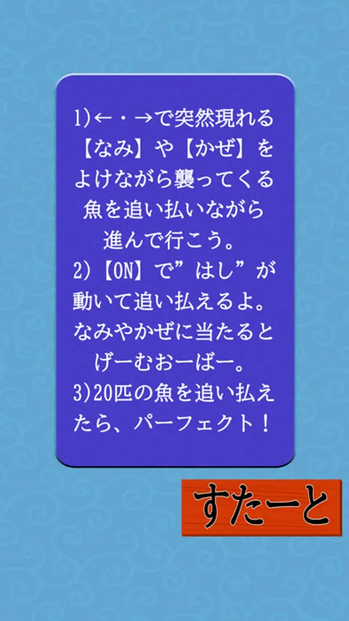 川を渡っている途中に現れる魚は【ON】ボタンで箸を動かして追い払えるよ!