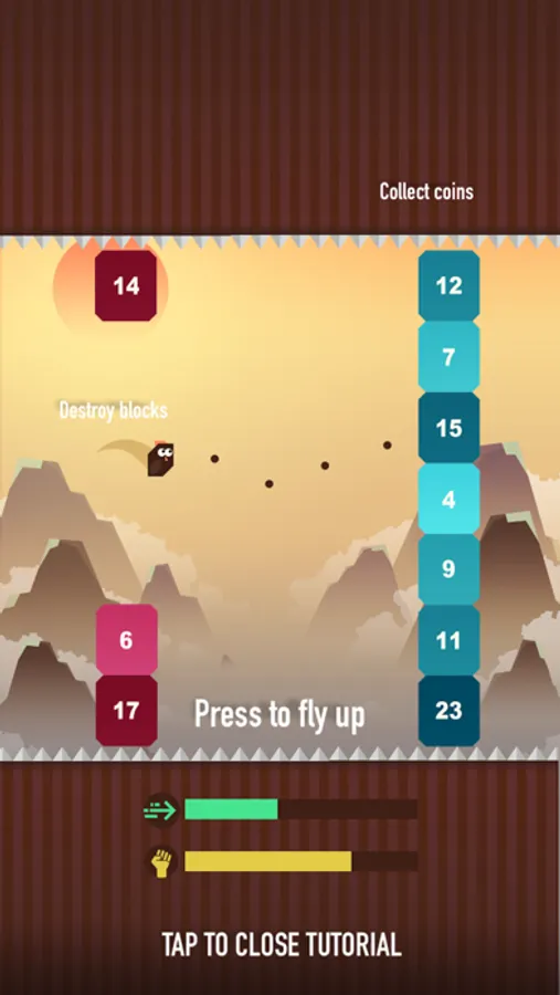 Each brick has different points. When you hit the target, the score will decrease. When it returns to 0 points, it will be hidden, you can pass it. Try not to touch it.