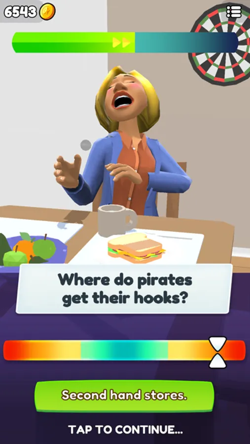 Dad Jokes 3D is a game where you have to choose the correct punchline to a dad joke—and if it doesn't get a laugh, you're out! You'll be given hundreds of funny jokes, but each round only allows for one mistake. Get two wrong answers in a row and the game's over!