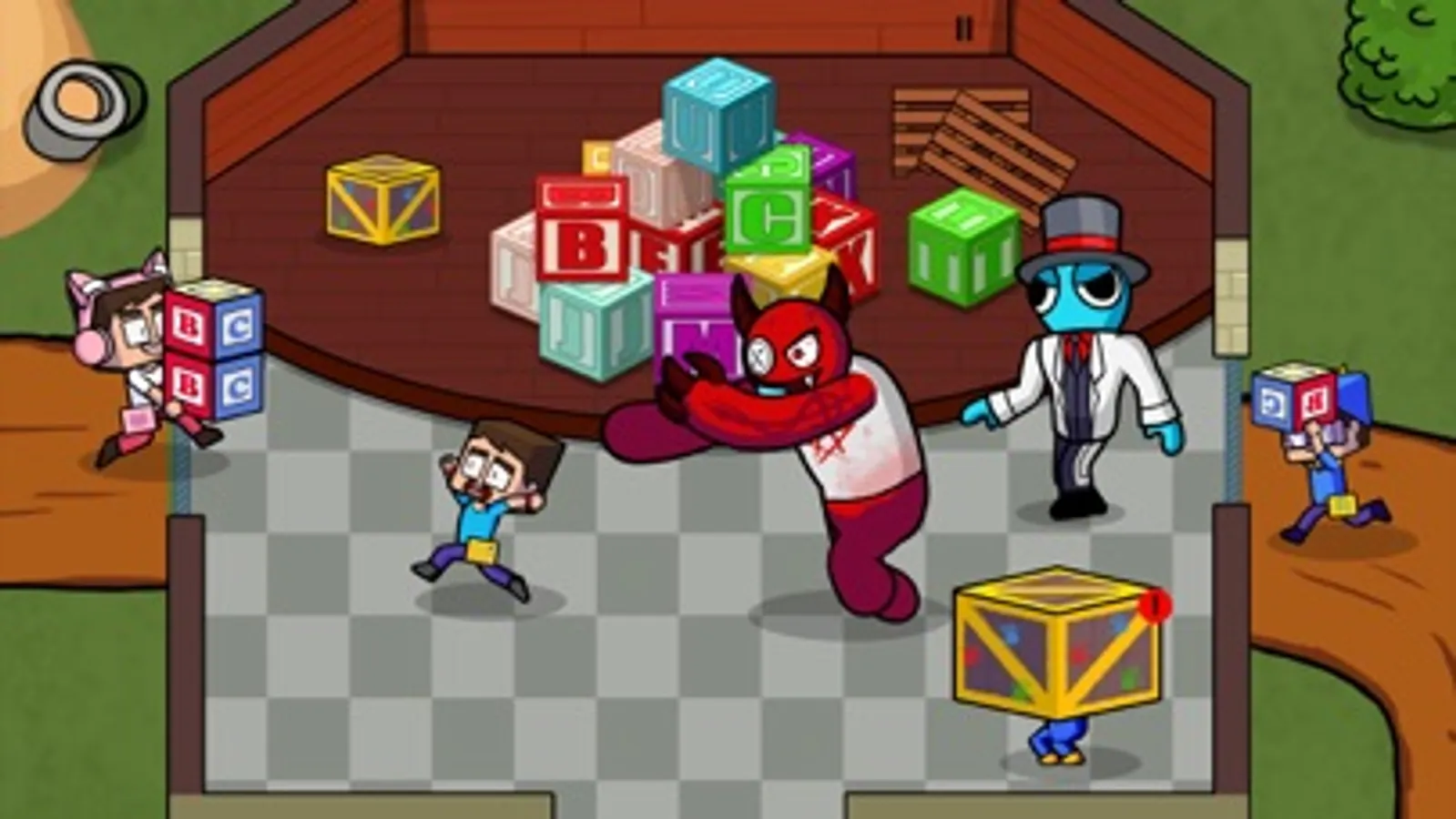 Blue Monster is the scariest monster in the game. He wanders around the map searching for you, indicated by his stomping and chuckling. He will chase down you that are not hidden inside a locker or a box.