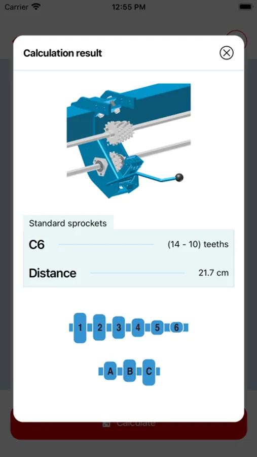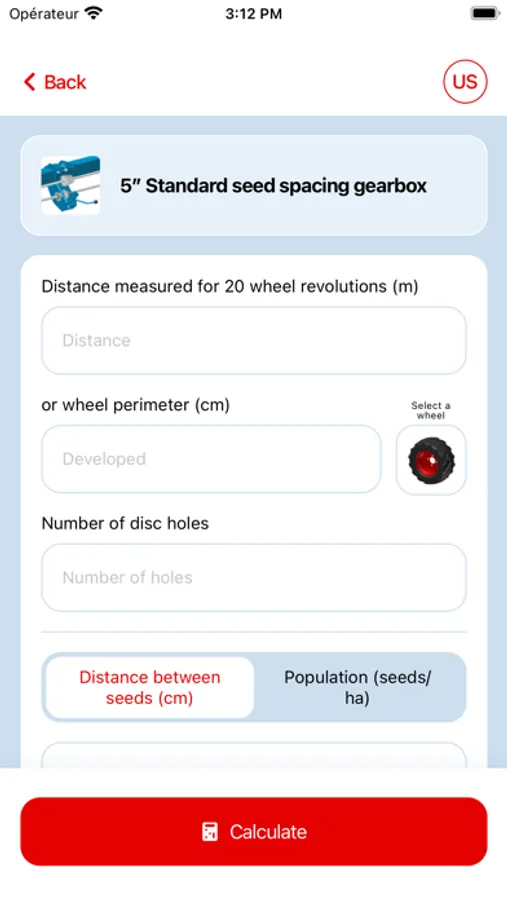 Once the adjustment made and the planter characteristics given (model of planter and gearbox, inter row spacing and number of holes on the discs), the user has just to indicate the required seed population (population/ha or distance between seeds) to know the appropriate gearbox ratio. The application proposes the ratio corresponding exactly to the required adjustment or the upper or lower ratios the nearest to the required adjustment.
