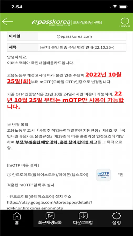 이패스코리아 B2B, 내일배움 수강을 위한 전용 Player(읽기전용앱)