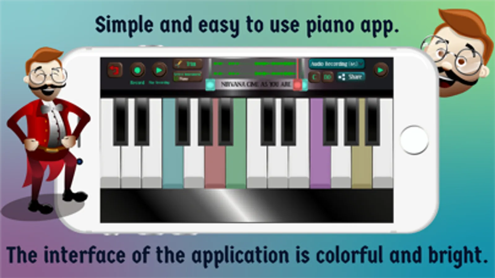 Can make melody, rhythms of your favorite songs. Virtual piano helps you to record & play rhythm. You can be star of piano in your friend circle. Watch tutorial, practice melody and enjoy my piano music. Start learning music immediately, read tutorial notes and play unlimited songs with Piano training: easy learn.