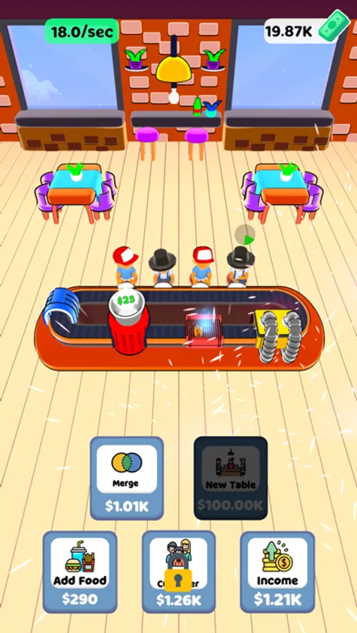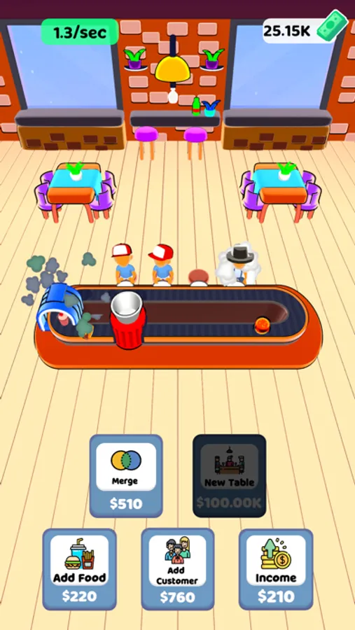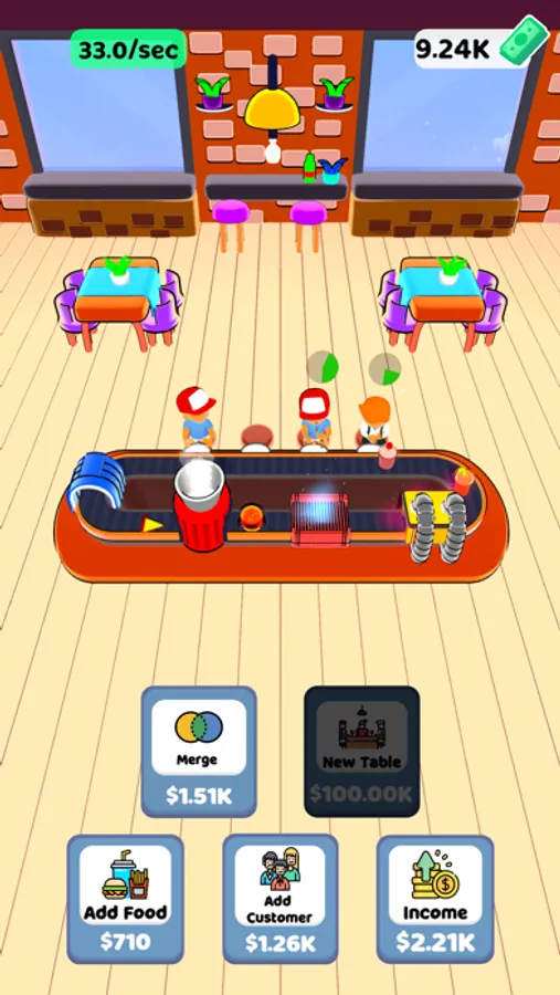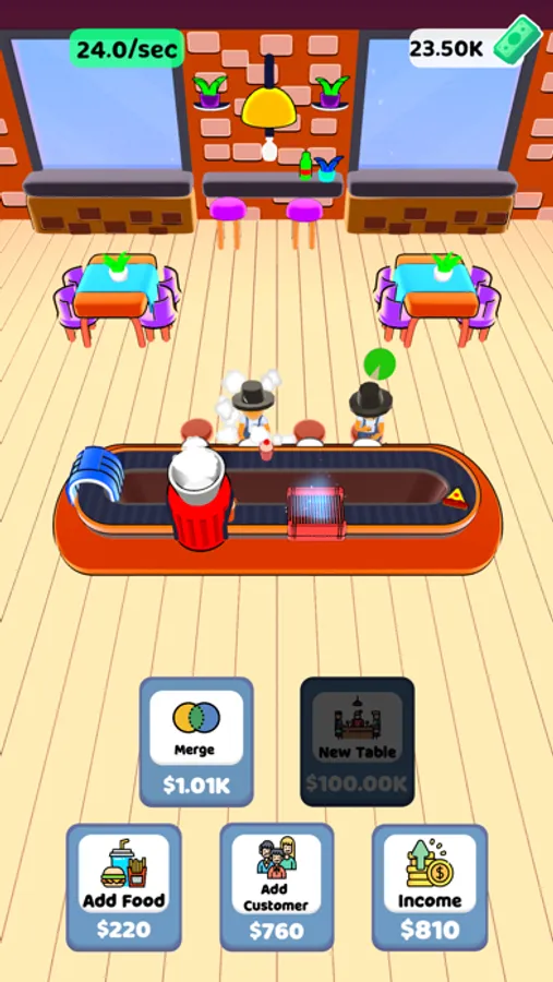 Produce food and serve food to customers so you can earn money. Produce items that will earn money with upgradeable features. Don't forget to use the merge customers feature to earn more money.