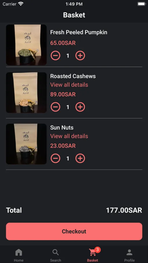 Arif- Sweet offers: Nuts, Coffee, Cardamom & Saffron.