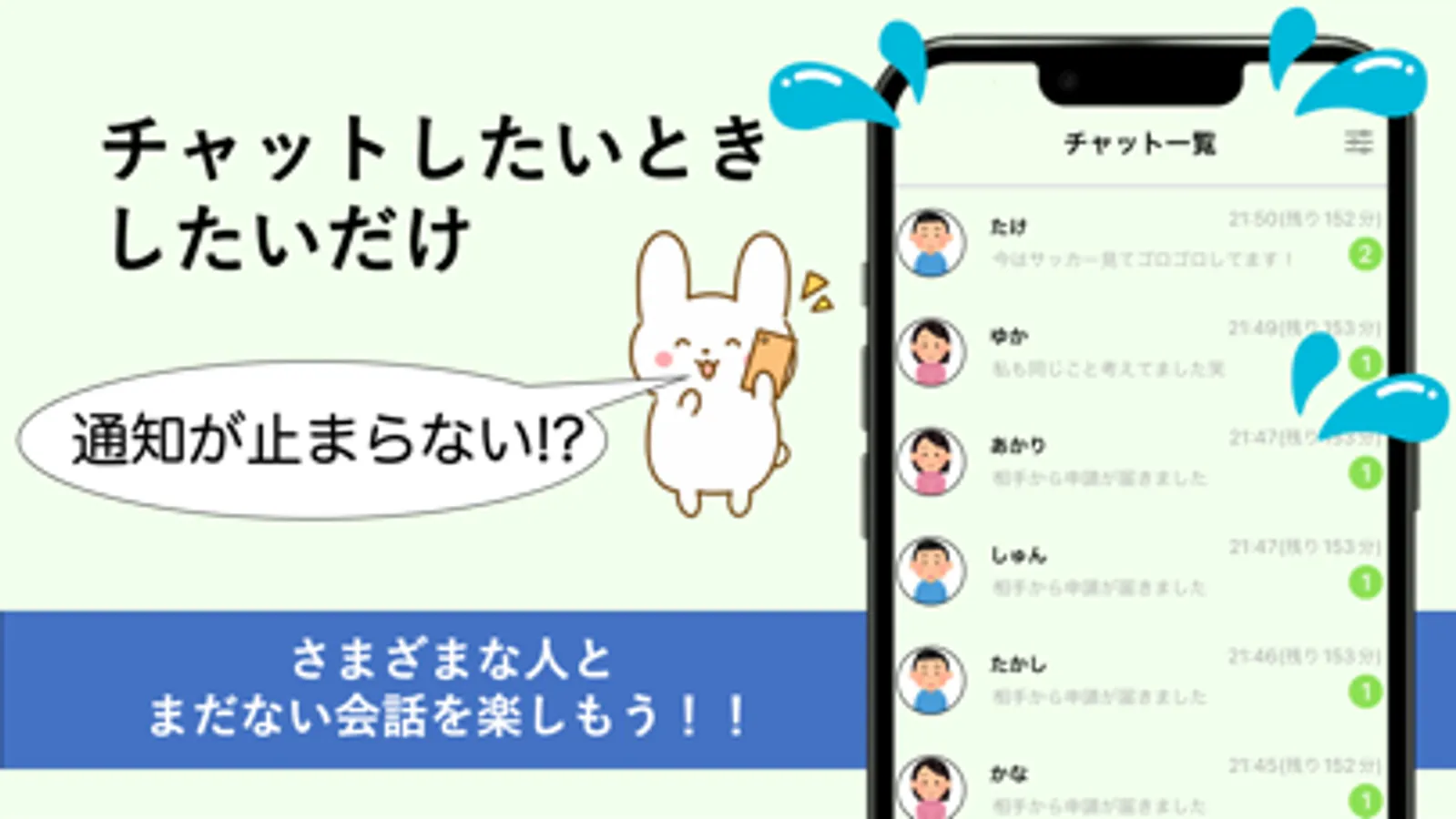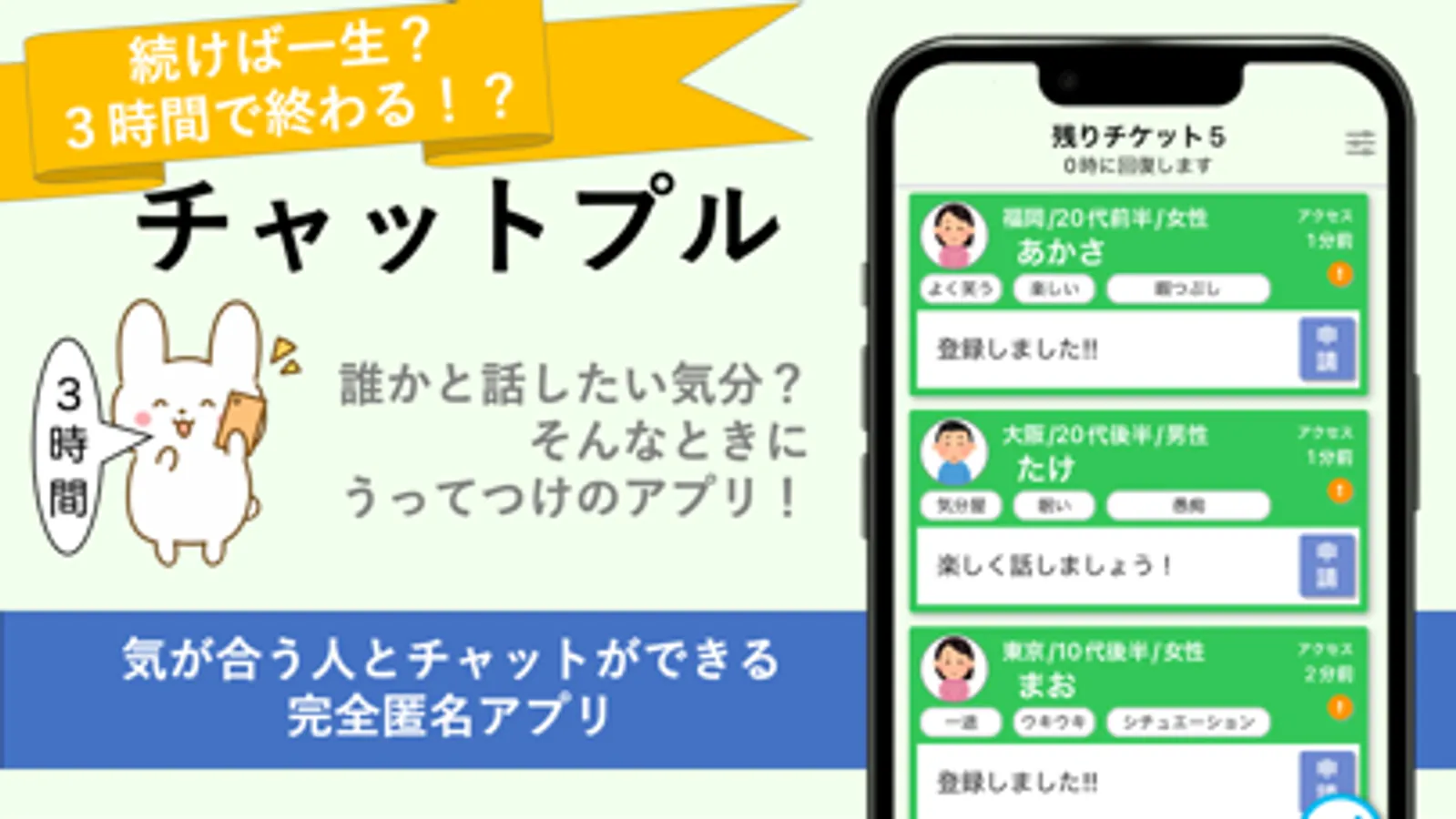 片方が返信しないまま3時間が経つと、自動でチャットが終了するアプリ。