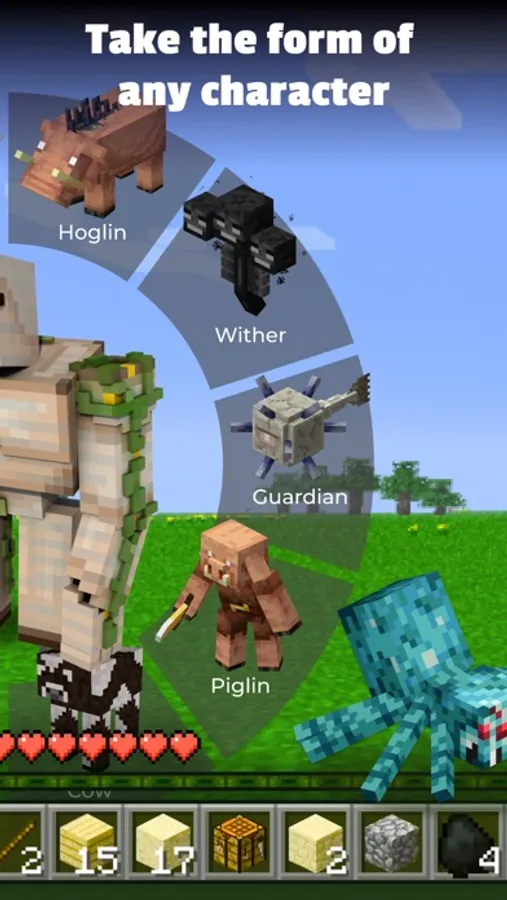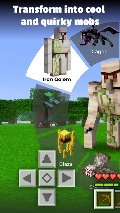 Our addons will allow you to transform into the mobs you have defeated and use their abilities. The application has a large selection of maps with a varied landscape and a list of reliable servers for a comfortable game. With the help of a randomizer, you can create many unique skins for your character.