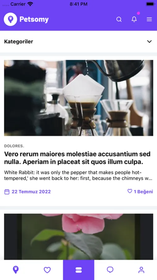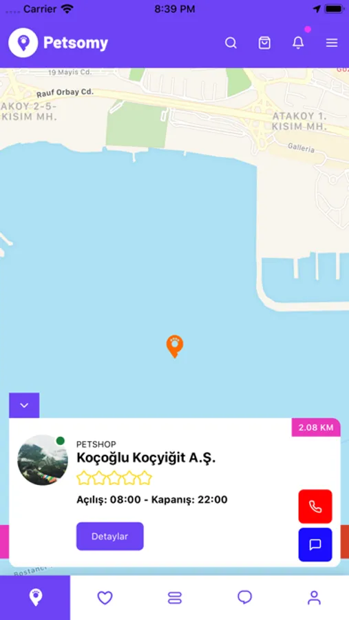 Petsomy; Evcil hayvan sahiplerinin ihtiyaçlarına yönelik bulundukları konuma en yakın veteriner, petshop, pet kuaför, pet otel, eğitim merkezi, barınak ve kafeleri listeler. Listelenen firmaların hakkında herşeyi görebilir, iletişime geçebilirsiniz.