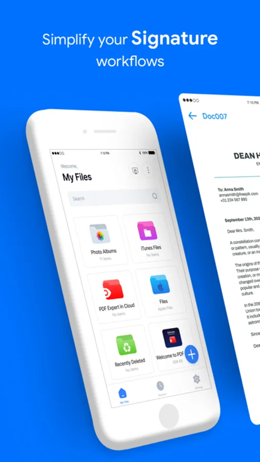 * Sign PDF files to sign contracts and agreements on the go with seamless cross-device syncing.