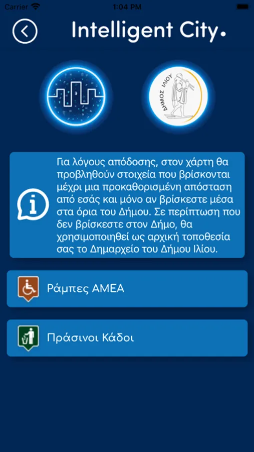 Εφαρμογή να διευκολύνουμε τους Δημότες μας. Περιέχει 2 βασικές εφαρμογές για χρήση από τους πολίτες μας. το FixMyCity, με σκοπό να επισημαίνουν τα προβλήματα στην πόλη μας και το CityPoints, με σκοπό να βρίσκουν εύκολα και γρήγορα, σημεία ενδιαφέροντος.
