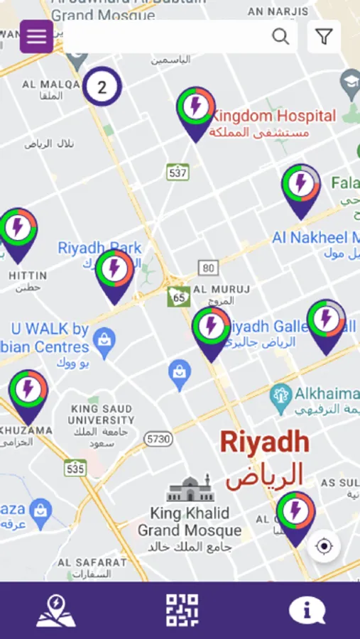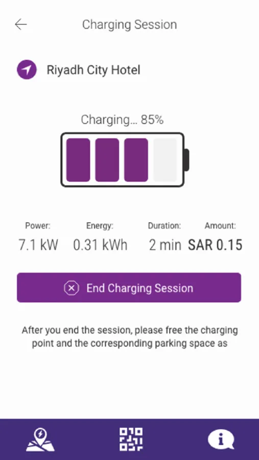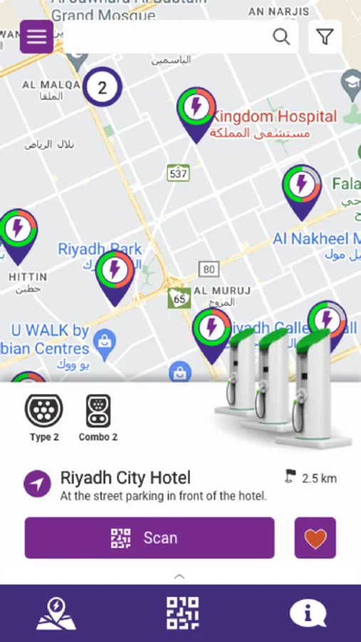 2. حجز مسبق لمد 15 دقيقة لمحطة الشحن، وارشادك الى اسرع طريق للوصول لها.