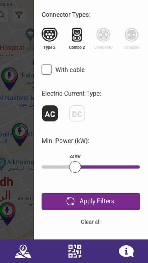 يتيح تطبيق ايفل المزايا التالية عند استخدامه لمحطات الشحن العامة :